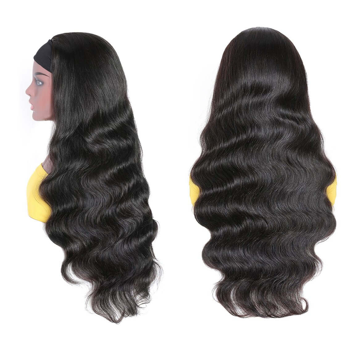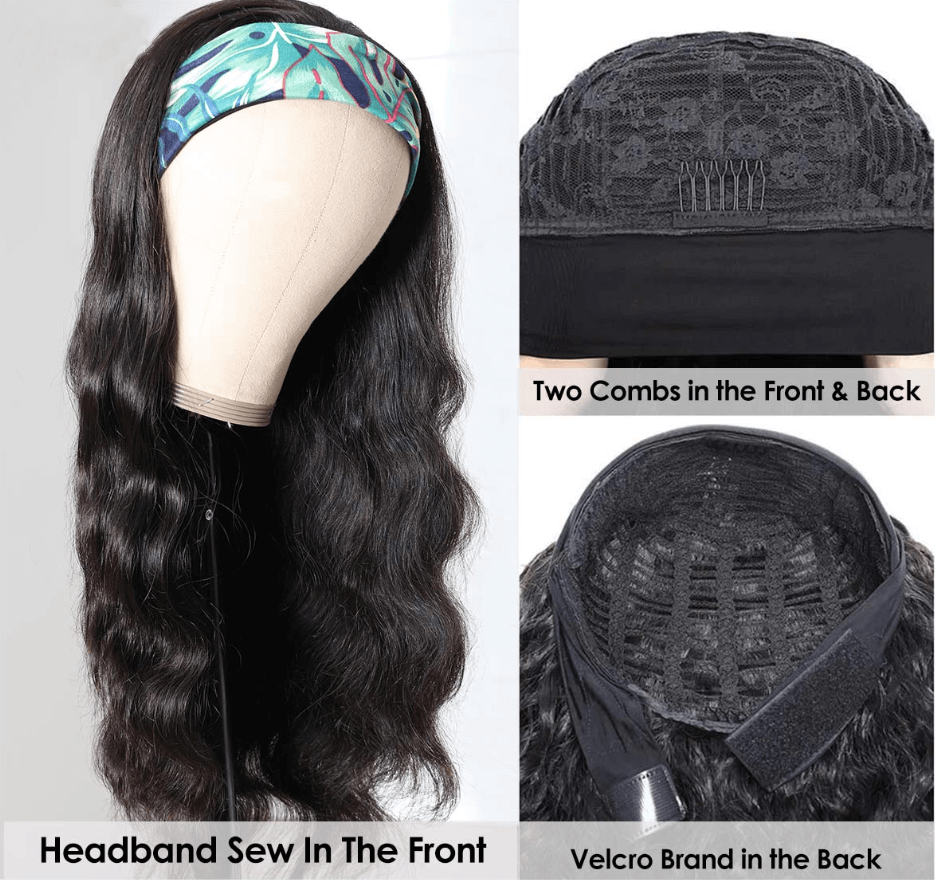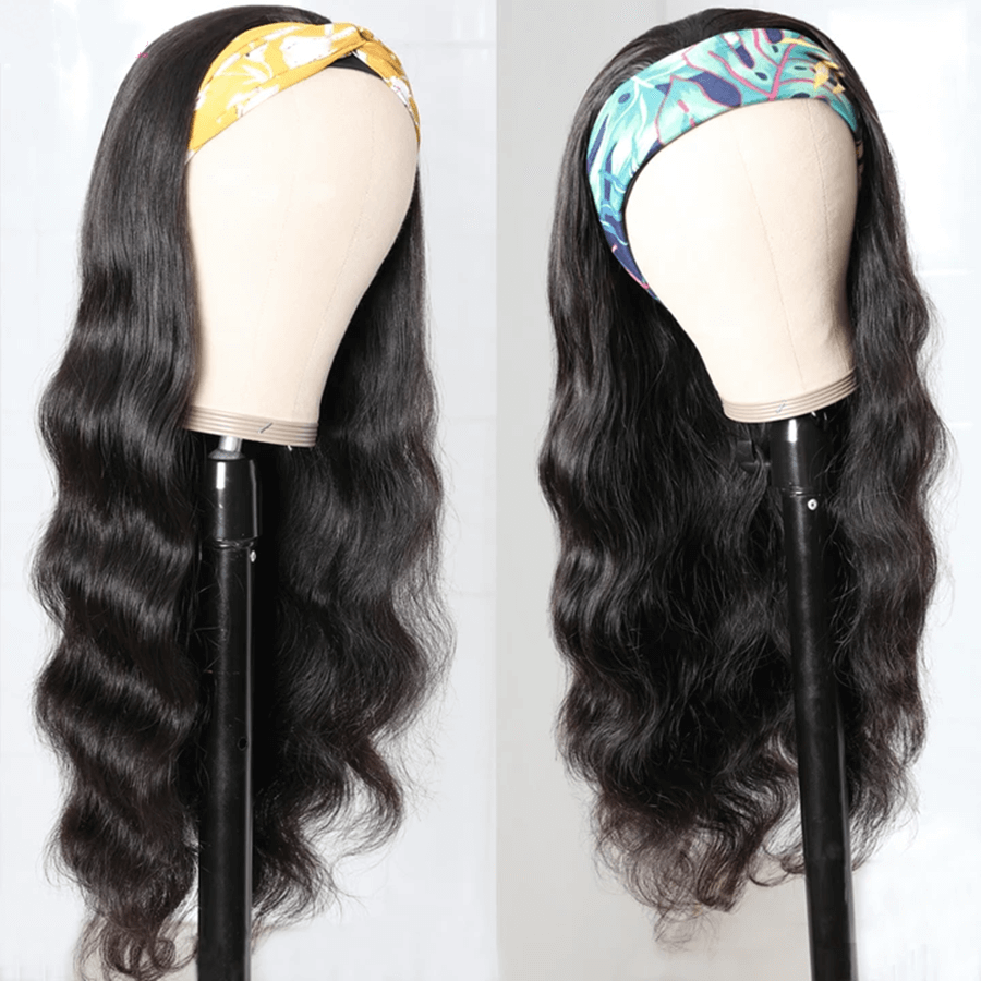 Headband Human Hair Scarf Wig Body Wave No GLUE Easy Wear for Women 18