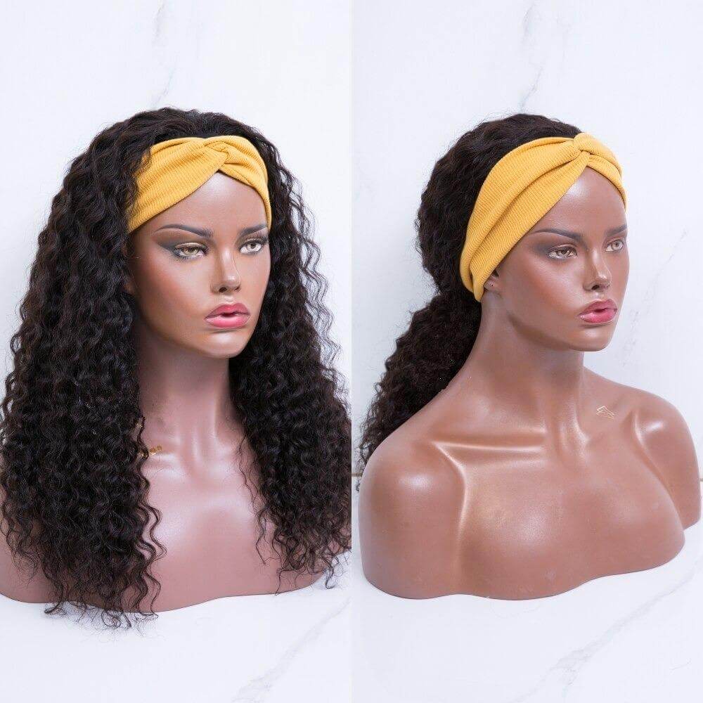 Headband Wig Deep Wave Human Hair Scarf Wig No GLUE Easy Wear